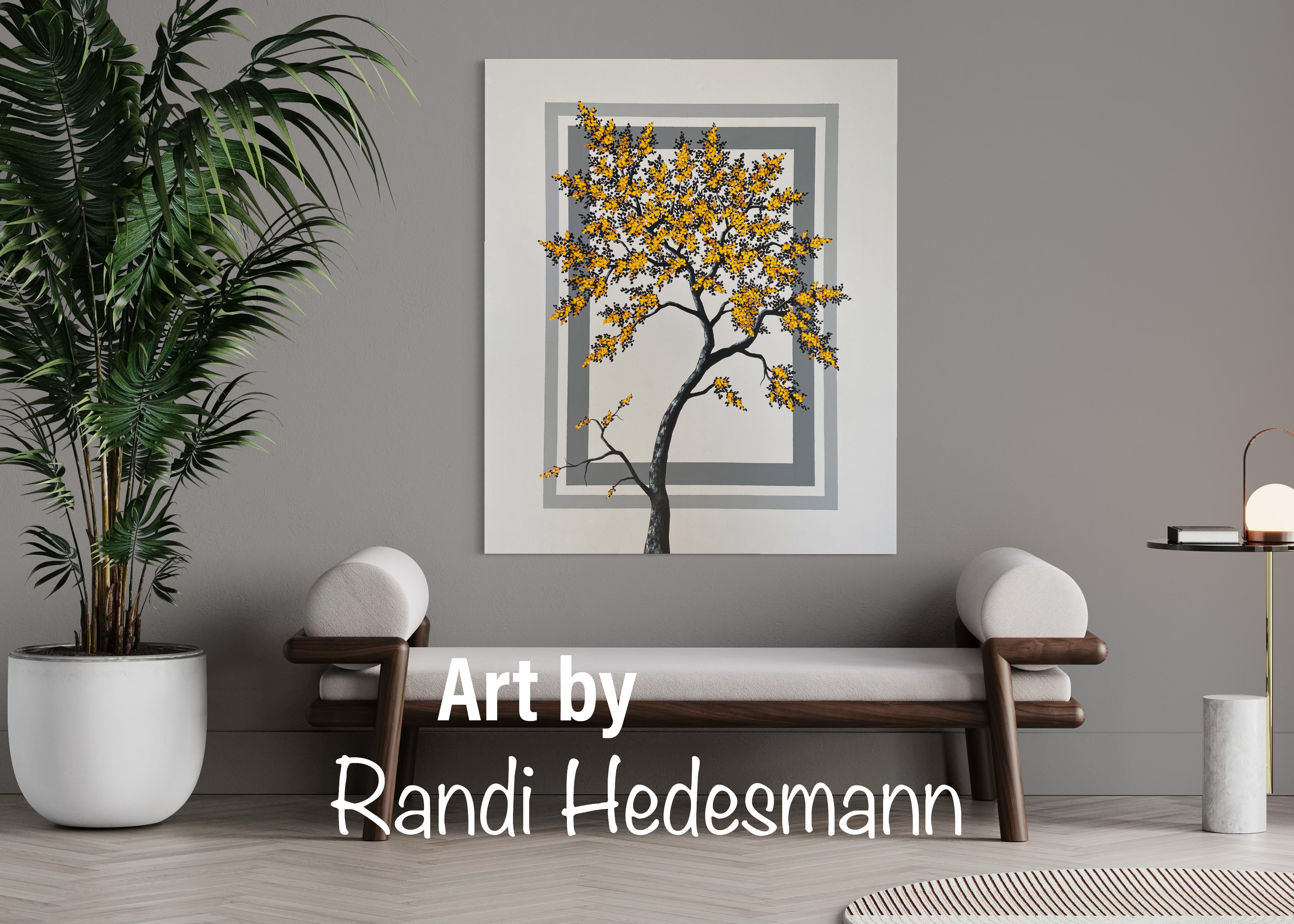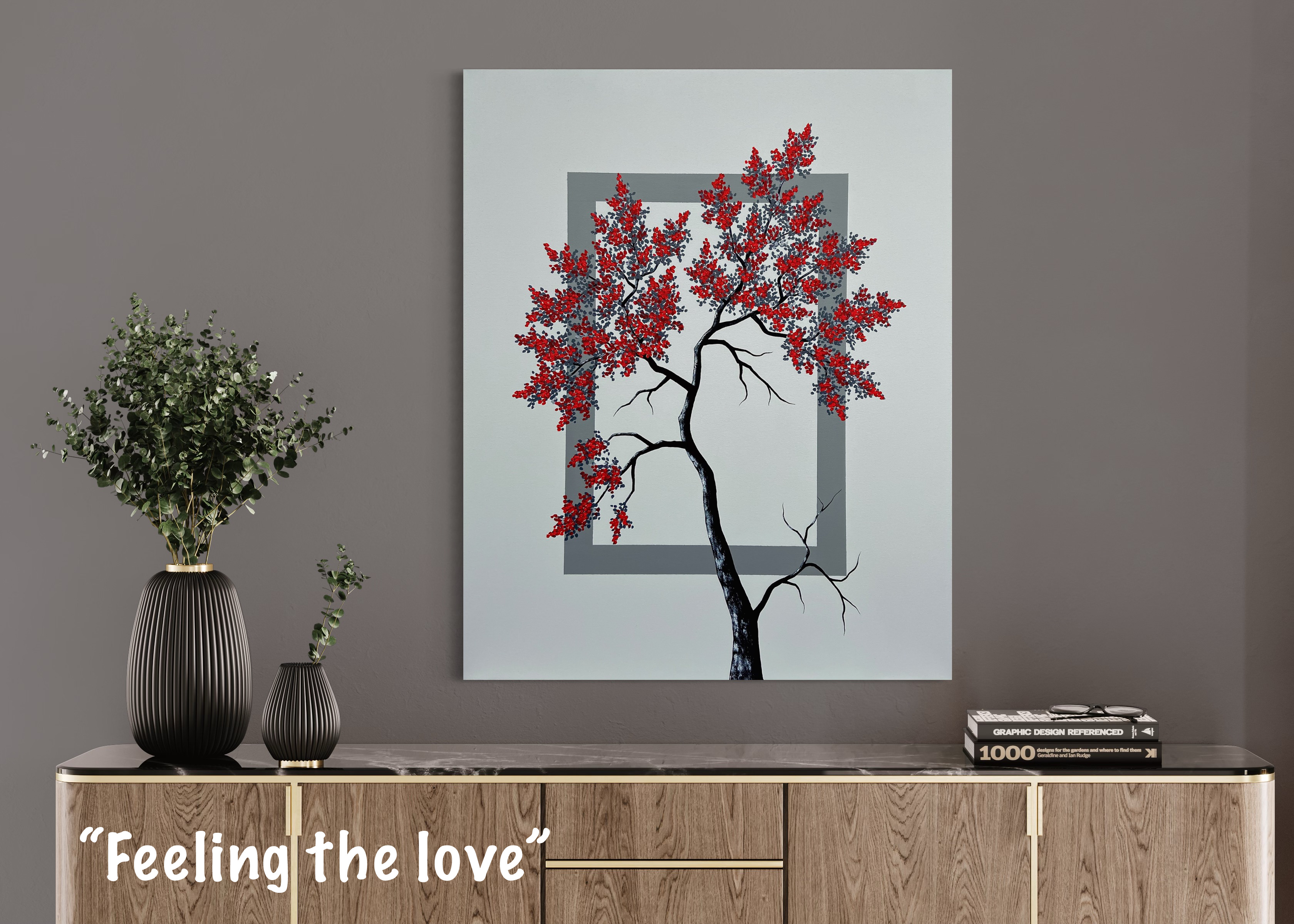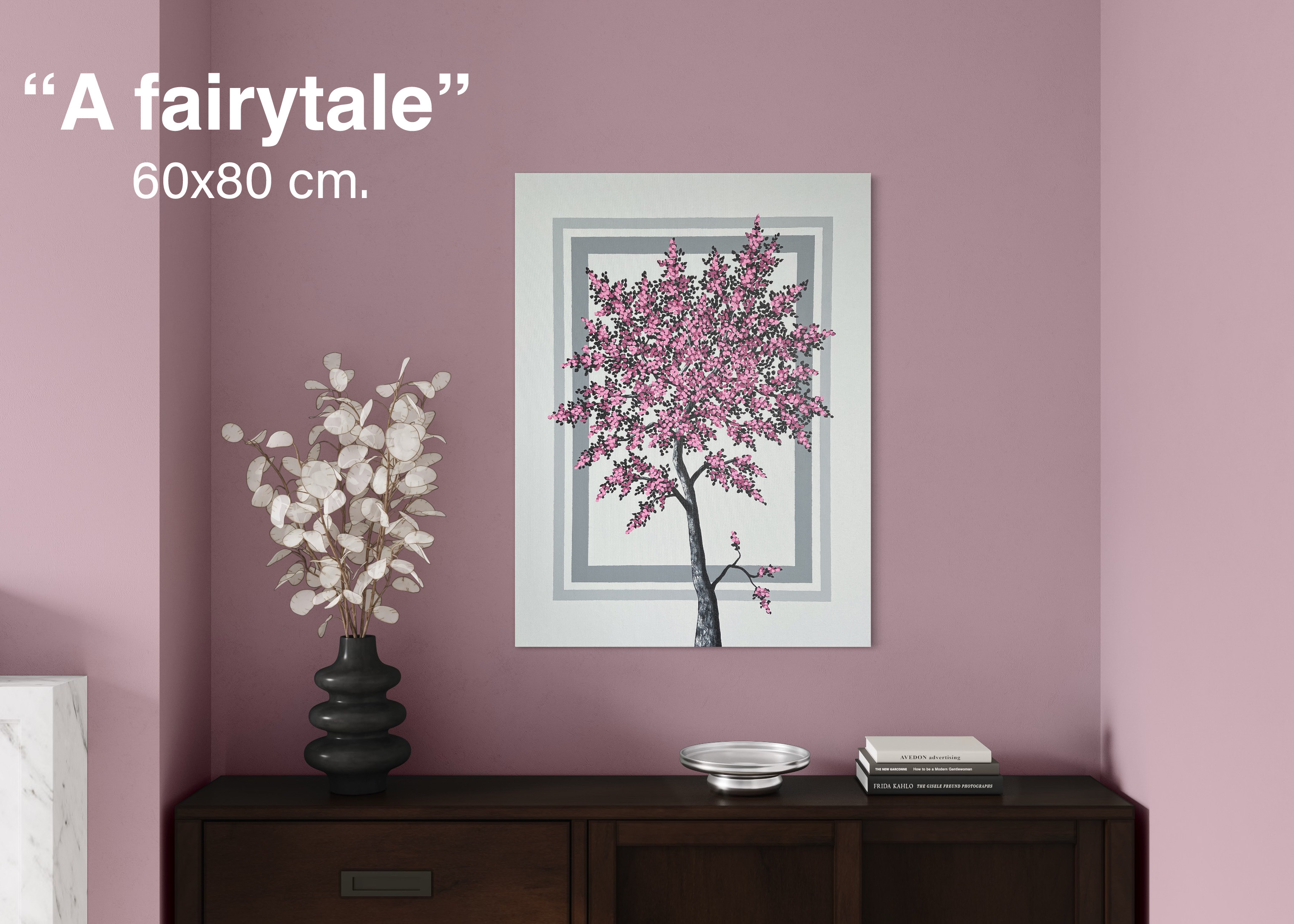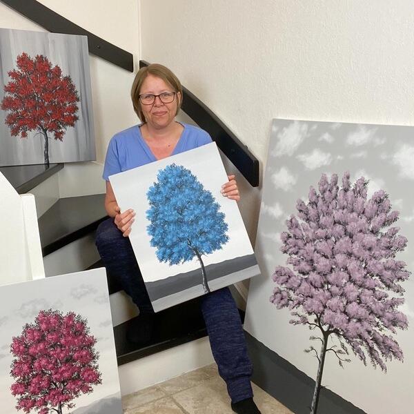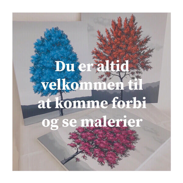 Mine træer maler jeg med akryl på kvalitets lærreder. De er farverige og fyldt med detaljer.